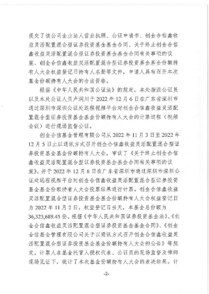 1、《创金合信基金管理有限公司关于以通讯方式召开创金合信鑫收益灵活配置混合型证券投资基金基金份额持有人大会的公告》