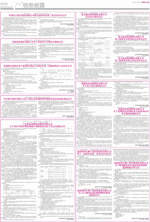 苏州新区高新技术产业股份有限公司2022年第三次临时股东大会决议公告