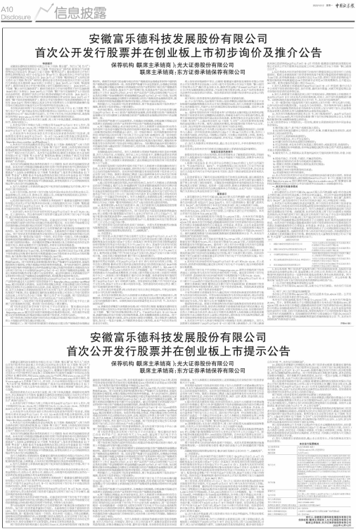 6、投资价值研究报告:发行人和联席主承销商将于《安徽富乐德科技发展股份有限公司首次公开发行股票并在创业板上市招股意向书》(以下简称“《招股意向书》”)刊登当日2022年12月12日(T-7日)在深交所网下发行电子平台提交投资价值研究报告,供网下投资者参考。