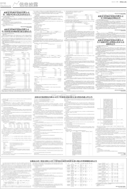 ●成都先导药物开发股份有限公司(以下简称“成都先导”或“公司”)高级管理人员暨核心技术人员万金桥先生因个人原因于近日向公司提出辞职申请,辞任后不再担任公司的任何职务。万金桥先生的辞职报告自送达董事会之日起生效。其原从事的工作将由公司副总经理、核心技术人员刘观赛先生承接,所负责的工作正在平稳交接,其辞任不会影响公司核心技术的完整性,不会对公司的生产经营活动带来重大不利影响,不会对公司的核心竞争力、业务发展、研发项目推进产生重大不利影响。