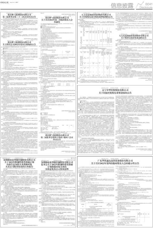 证券代码:600917 证券简称:重庆燃气 公告编号:2022-047