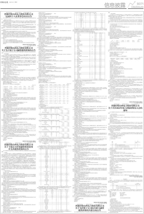 晋能控股山西电力股份有限公司九届四十八次董事会决议公告(公告编号:2022临-050)