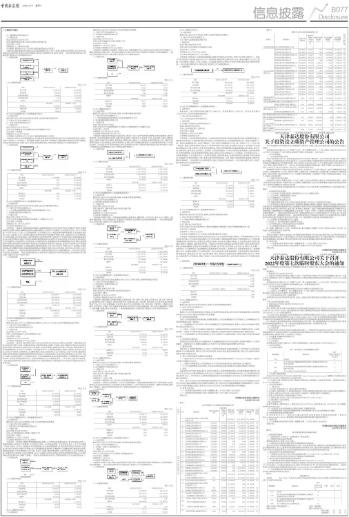 天津泰达股份有限公司(以下简称“公司”)第十届董事会第二十六次(临时)会议决定于2022年12月29日召开公司2022年度第七次临时股东大会。具体事项通知如下: