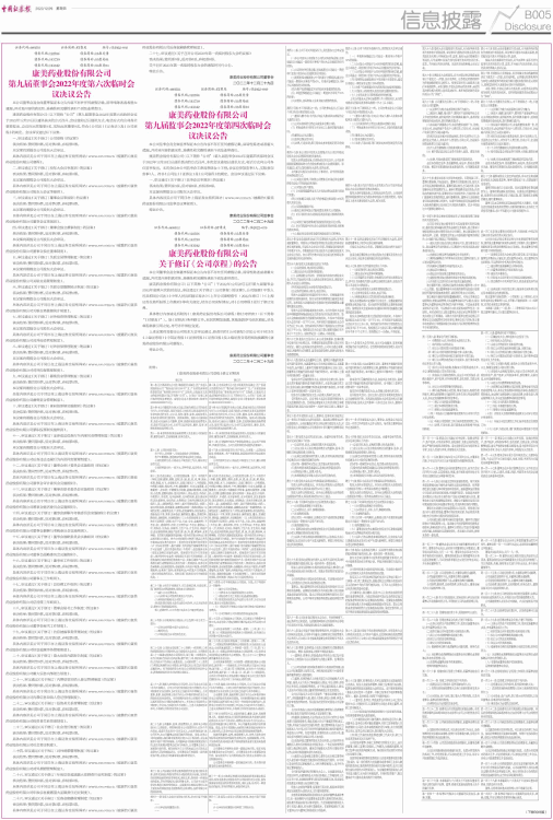 康美药业股份有限公司(以下简称“公司”)于2022年12月28日召开第九届董事会2022年度第六次临时会议,审议通过《关于修订〈公司章程〉的议案》,公司根据《中华人民共和国公司法》《中华人民共和国证券法》《上市公司章程指引(2022年修订)》《上海证券交易所股票上市规则》等有关规定,结合公司实际情况,对《公司章程》进行了修订完善。