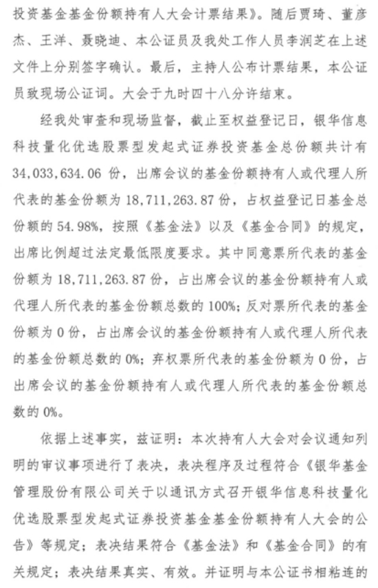 关于银华信息科技量化优选股票型发起式证券投资基金基金份额持有人大会表决结果暨决议生效公告