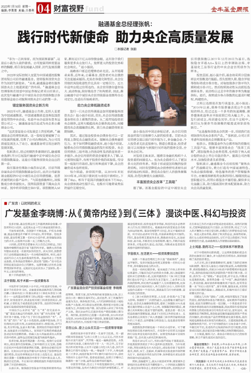 2022年实际控制人变更为中国诚通控股集团有限公司后的融通基金,便将服务国资央企作为其时代新使命。“未来,融通基金将在服务国资央企上做更深更广的布局。”融通基金总经理张帆在接受中国证券报记者采访时表示,此次发行融通中证中诚信央企信用债指数证券投资基金是公司服务国资央企行动的第一步。