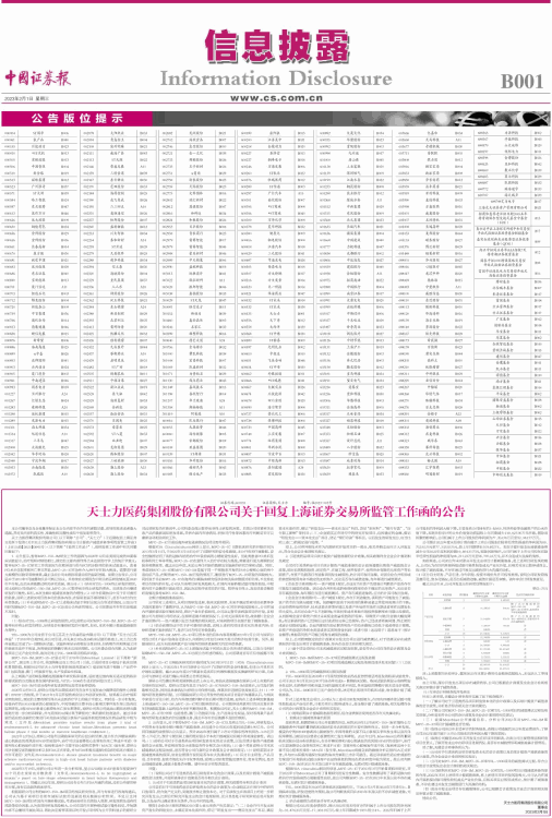 天士力医药集团股份有限公司关于回复上海证券交易所监管工作函的公告