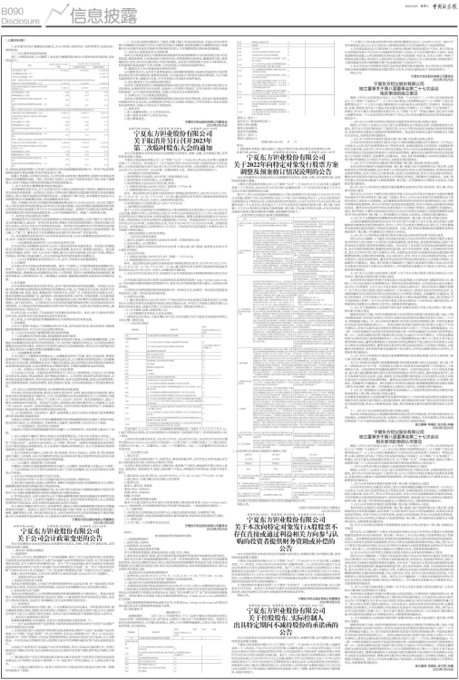 宁夏东方钽业股份有限公司(以下简称“公司”)于2022年11月3日召开第八届董事会第二十二次会议,2023年2月14日召开第八届董事会第二十六次会议审议通过了关于公司非公开发行股票的相关议案。