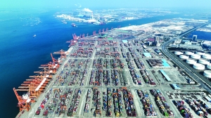 这是广西钦州港集装箱码头(无人机照片)。