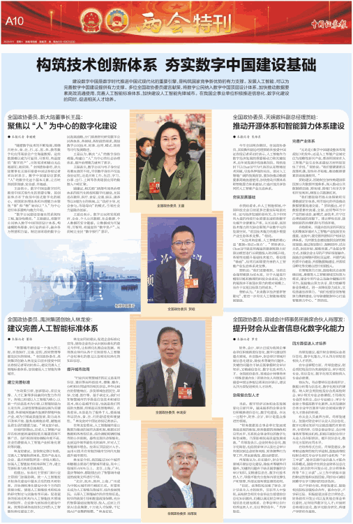 建设数字中国是数字时代推进中国式现代化的重要引擎,是构筑国家竞争新优势的有力支撑。发展人工智能,可以为完善数字中国建设提供有力支撑。多位全国政协委员建言献策,将数字公民纳入数字中国顶层设计体系,加快推动数据要素高效流通使用,完善人工智能标准体系,加快建设人工智能先锋城市。在我国企事业单位积极推进信息化、数字化建设的同时,促进相关人才培养。
