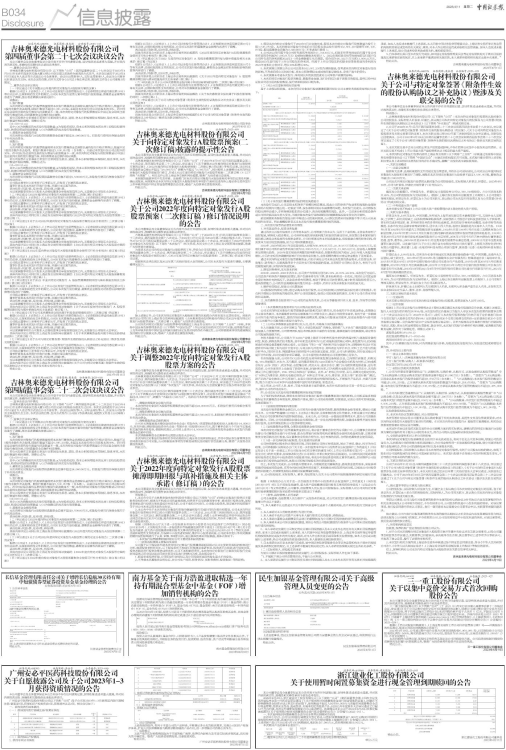 吉林奥来德光电材料股份有限公司(以下简称“公司”)于2023年4月10日召开第四届董事会第二十七次会议、第四届监事会第二十二次会议,审议通过了《关于调整2022年度向特定对象发行A股股票方案的议案》、《2022年度向特定对象发行A股股票预案(二次修订稿)的议案》等相关议案,决定将本次募集资金总额由不超过“24,000万元”调整为不超过“9,500万元”,同时按照上述调整对本次向特定对象发行A股股票预案进行修订,形成《2022年度向特定对象发行A股股票预案(二次修订稿)》(以下简称“本预案”)。相关文件已在上海证券交易所网站披露,敬请广大投资者注意查阅。