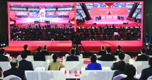 4月10日,在沪深交易所主板注册制首批企业上市仪式北京分会场,与会嘉宾通过屏幕实时观看沪深两地交易所上市仪式。当日,沪深交易所主板注册制首批企业上市仪式在北京、上海、深圳三地连线开展。上午9时30分,10家企业正式在沪深主板上市交易。