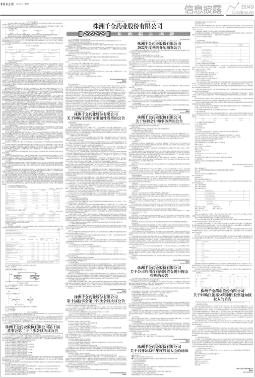 具体内容详见与本公告同日披露于上海交易所网站的《千金药业2022年度利润分配预案公告》。