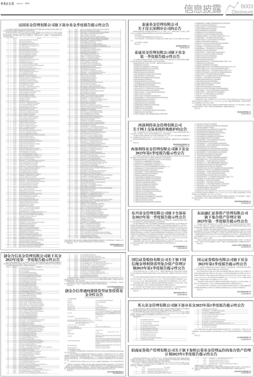 东兴基金管理有限公司旗下全部基金2023年第一季度报告提示性公告