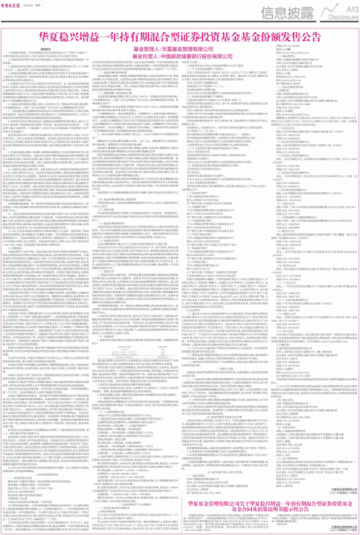 华夏稳兴增益一年持有期混合型证券投资基金基金份额发售公告