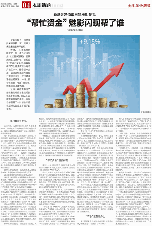 视觉中国图片 半导体板块上演“过山车”行情 机构激辩后市走向02基金新闻朴石投资向朝勇: 追求更好更稳健客户收益05基金人物04本周话题 新基金净值单日暴涨9.15% “帮忙资金”魅影闪现帮了谁07私募基金部分百亿私募重仓股浮现 争相布局数字经济板块