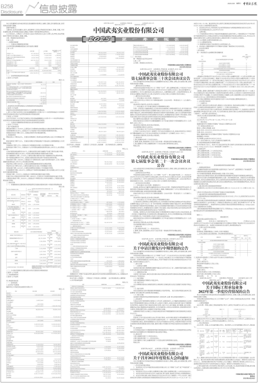 中国武夷实业股份有限公司(以下简称“公司”)第七届监事会第二十一次会议于2023年4月20日以电子邮件方式发出通知,2023年4月25日以通讯方式召开。会议应到监事5人,实到监事5人(其中以通讯表决方式出席会议5人,无监事委托出席)。会议由监事会主席彭家清先生主持。会议符合《公司法》和《公司章程》的有关规定。