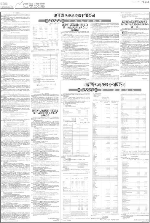 具体内容详见公司披露于上海证券交易所网站的《浙江野马电池股份有限公司2023年第一季度报告》