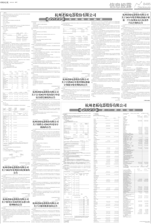 证券代码:002508 证券简称:老板电器 公告编号:2023-015