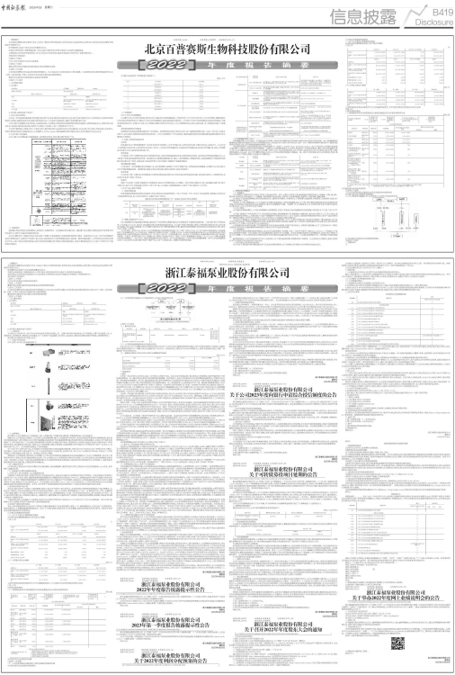 浙江泰福泵业股份有限公司(以下简称“公司”)于2023年4月25日召开第三届董事会第二十二次会议及第三届监事会第十七次会议,审议通过了《关于公司2022年年度报告及摘要的议案》。