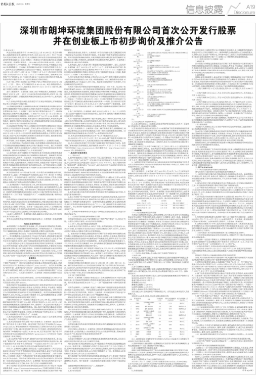 6、本次发行,发行人将进行网下路演推介及网上路演推介。发行人及保荐人(主承销商)将于2023年5月10日(T-1日)组织安排本次发行网上路演。关于网上路演的具体信息请参阅2023年5月9日(T-2日)刊登的《深圳市朗坤环境集团股份有限公司首次公开发行股票并在创业板上市网上路演公告》(以下简称“《网上路演公告》”)。