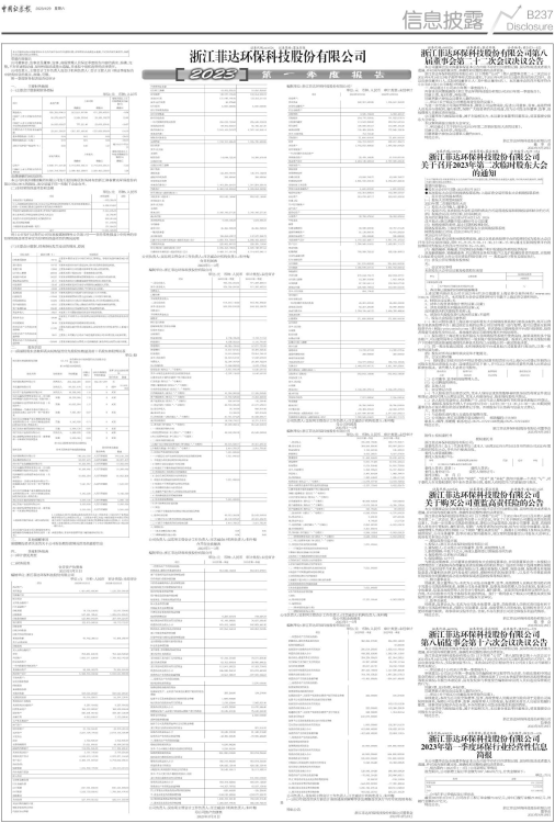 内容详见同期披露的《浙江菲达环保科技股份有限公司2023年第一季度报告》。