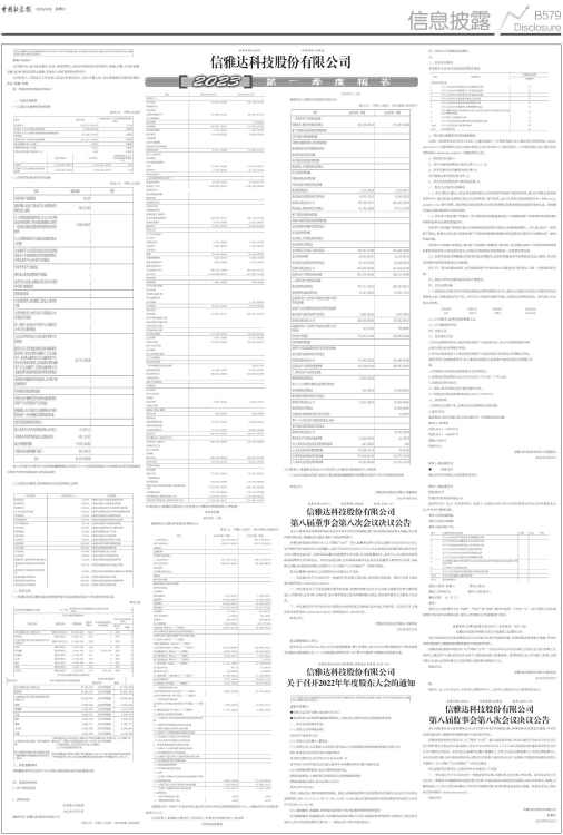 信雅达科技股份有限公司(以下简称“公司”)第八届董事会第八次会议通知于2023年4月25日以电子邮件等方式发出并以电话确认,会议于2023年4月28日上午10:00以现场会议加通讯表决的方式在公司六楼会议室召开。本次会议由董事长耿俊岭先生主持,公司现有董事9人,实到9人,公司监事会成员和高级管理人员列席会议。本次会议的召集、召开和表决程序及出席会议的董事人数均符合法律、法规和《信雅达科技股份有限公司章程》(以下简称“《公司章程》”)的有关规定。