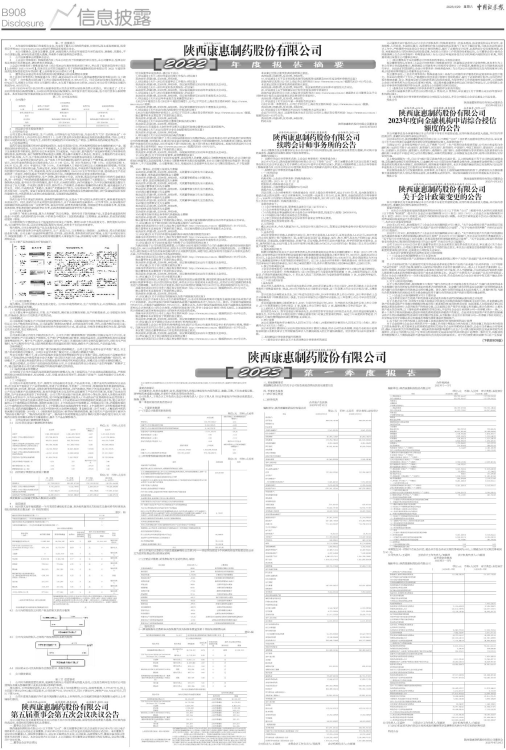 上会会计师事务所(特殊普通合伙)对公司2022年度财务报表进行审计,并出具了保留意见的审计报告【上会师报(2023)5588号】,具体详见公司同日披露的《关于对陕西康惠制药股份有限公司 2022 年度财务报表发表保留意见的专项说明》【上会师报字(2023)第6513号】。