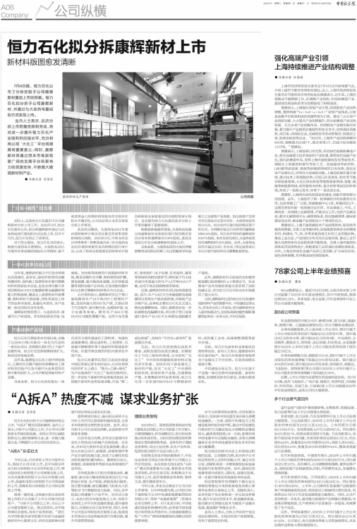 恒力石化拟分拆康辉新材上市