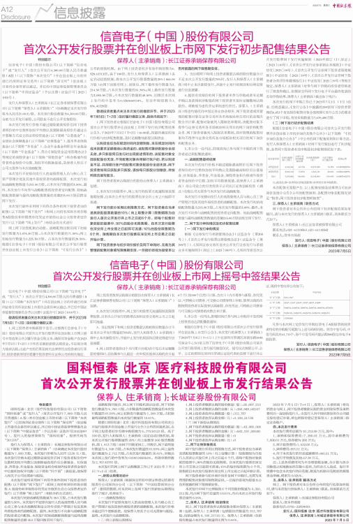 首次公开发行股票并在创业板上市发行结果公告