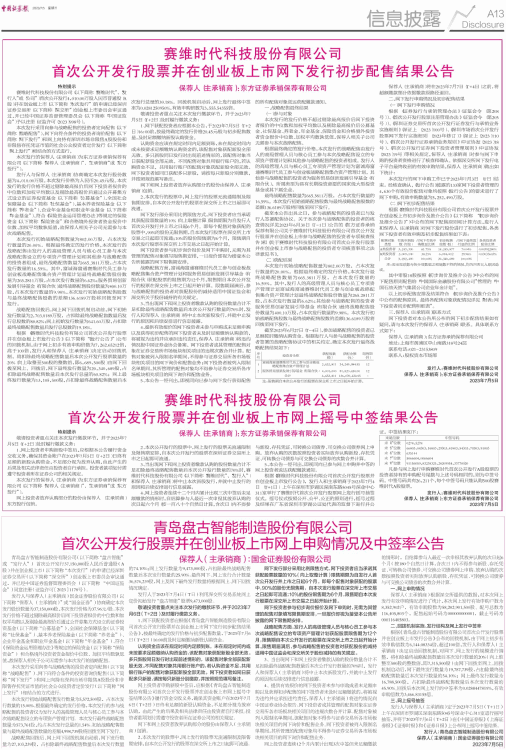 首次公开发行股票并在创业板上市网上摇号中签结果公告