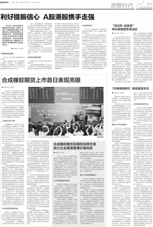 7月28日,全球首个合成橡胶期货及期权在上海期货交易所挂牌交易。上期所党委书记、理事长田向阳在致辞中表示,上市合成橡胶期货及期权,有助于完善市场化定价机制,以市场化手段助力橡胶及轮胎产业转型升级;有助于弥补国际合成橡胶乃至丁二烯产业链定价空白,增强我国国际贸易议价能力,提升“中国价格”影响力;有助于进一步丰富橡胶产业链风险管理工具,企业可以根据市场变化和自身需求,灵活运用期货、期权组合策略,为稳定经营系上“安全带”。