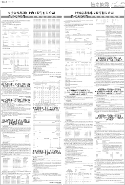 二、 《2023年半年度募集资金存放与实际使用情况的专项报告》(详见公司披露于信息披露媒体《中国证券报》、《上海证券报》、《证券时报》、《证券日报》和上海证券交易所网站(http://www.sse.com.cn)的“临 2023-051南侨食品集团(上海)股份有限公司2023年半年度募集资金存放与实际使用情况的专项报告”)