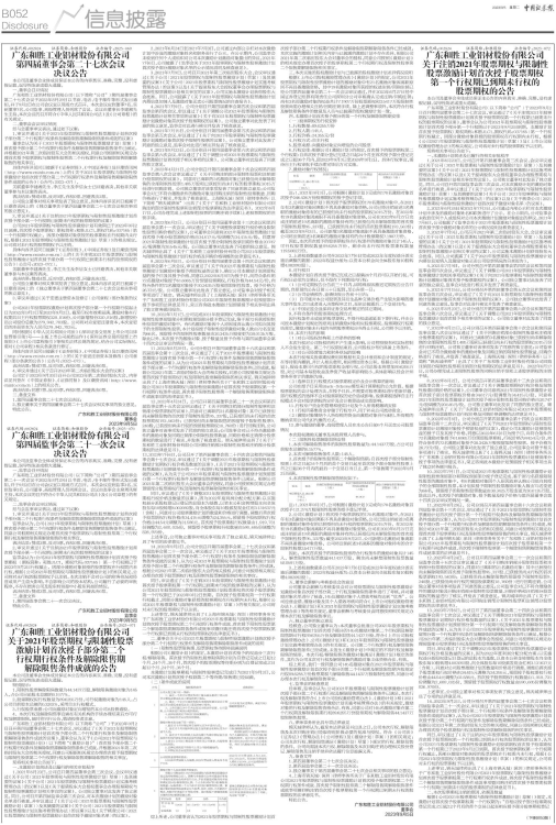 12、2023年4月24日,公司召开第四届董事会第二十一次会议和第四届监事会第十五次会议审议通过了《关于回购注销部分限制性股票和注销部分股票期权的议案》,同意对已离职的21名激励对象(其中已获授但尚未解除限售的首次授予限制性股票95,337股,已获授但尚未行权的首次股票期权193,563份;已获授但尚未解除限售的预留授予限制性股票9,240股,已获授但尚未行权的预留股票期权18,760份)进行回购注销。公司独立董事对该事项发表了同意的独立意见;公司监事会对已不符合激励条件的激励对象及回购注销部分限制性股票数量、回购价格和注销部分股票期权的数量进行了核实,并发表了核查意见。锦天城律师出具了《关于广东和胜工业铝材股份有限公司回购注销部分限制性股票和注销部分股票期权的法律意见书》。