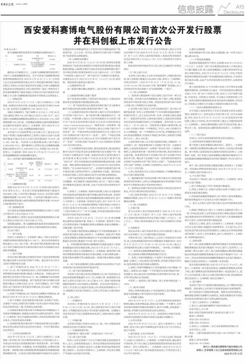 4、保荐人(主承销商)按照中国结算上海分公司提供的实际划拨资金有效配售对象名单确认最终有效认购。获得初步配售的网下投资者未及时足额缴纳新股认购资金的,发行人与保荐人(主承销商)将视其为违约,将于2023年9月22日(T+4日)在《西安爱科赛博电气股份有限公司首次公开发行股票并在科创板上市发行结果公告》(以下简称“《发行结果公告》”)中予以披露,并将违约情况报中国证监会和中国证券业协会备案。