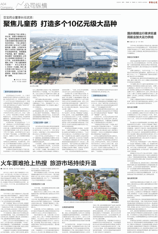 亚宝药业丁桂儿脐贴上市以来,其累计销售超21亿贴。亚宝药业董事长任武贤日前在接受中国证券报记者专访时表示,丁桂儿脐贴已成为中国工业化生产儿科脐贴的第一品牌。公司多年来通过工艺改进、设备改造、数字化转型等手段,持续提高产品质量。基于“诚信做人,用心做药”的经营理念,公司在儿科领域已经拥有多个主打产品,未来将更加聚焦儿童药,并将“丁桂儿童药做到中国第一”作为公司未来5-10年的一大战略。同时,集中资源力争打造出3-4个10亿元级大品种,以及多个梯度品种,将亚宝打造成儿科第一品牌。