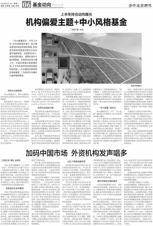 Wind数据显示,今年上半年,在市场震荡环境下,部分基金受到机构投资者的青睐,机构投资者持有基金份额占比环比提升幅度明显。交银新生活力、诺安积极回报A、景顺长城中小盘A等基金,机构持仓比例大幅上升。中国证券报记者梳理发现,上半年机构持仓较多的基金特征明显:一为主题特征明显的权益类基金,二为投资方向偏中小盘风格的基金。