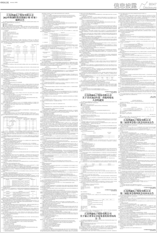 证券代码:603629 证券简称:利通电子 公告编号:2023-055