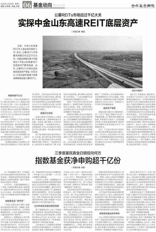 日前,中金山东高速REIT在上海证券交易所上市,至此,公募REITs市场募资规模正式迈过千亿大关。中国证券报记者于日前探访了中金山东高速REIT的底层资产鄄菏高速。此外,公募REITs市场也迎来新的底层资产类型,10月26日,沪深交易所受理了四单消费基础设施公募REITs。
