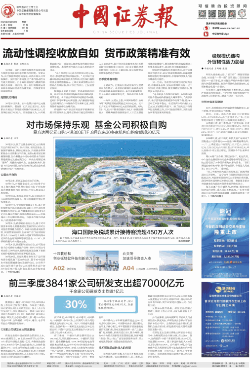 数据显示,截至10月29日17时,3879家A股上市公司已发布三季报,今年前三季度,3841家可比A股公司研发支出(投入)合计为7258.6亿元,同比增长8.3%。其中,2481家公司前三季度研发支出同比保持增长,研发投入强度(研发支出总额占营收比例)超10%的公司达670家,生物制药、半导体、通信、电子等行业公司数量排名靠前。