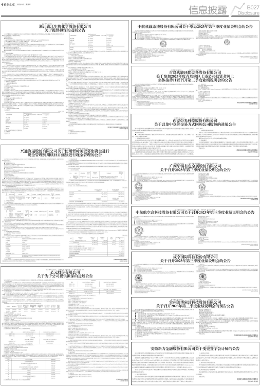 中航机载系统股份有限公司(以下简称“公司”)已于2023年10月25日在上海证券交易所网站(www.sse.com.cn)披露了《中航机载2023年第三季度报告》。为便于广大投资者更加全面深入地了解公司经营业绩、发展战略等情况,公司定于2023年11月09日(星期四)15:00-16:00在“价值在线”(www.ir-online.cn)举办中航机载2023年第三季度业绩说明会,与投资者进行沟通和交流,广泛听取投资者的意见和建议。