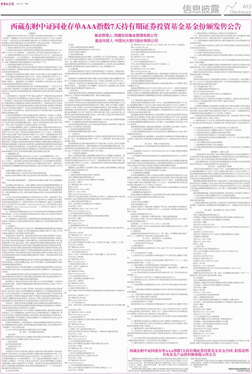 西藏东财中证同业存单AAA指数7天持有期证券投资基金基金份额发售公告