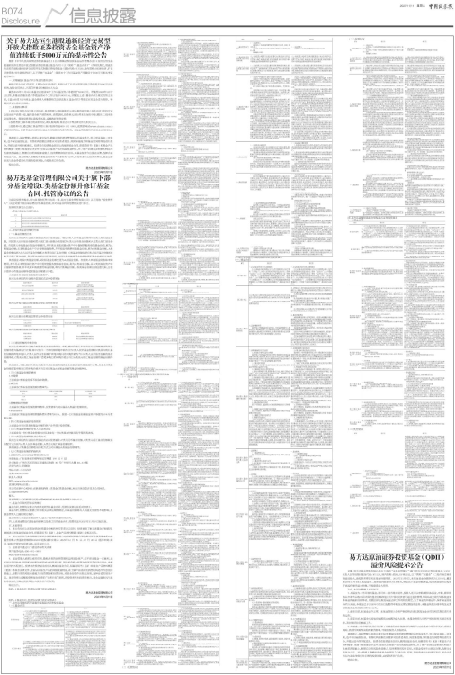 根据《中华人民共和国证券投资基金法》《公开募集证券投资基金运作管理办法》《易方达恒生港股通新经济交易型开放式指数证券投资基金基金合同》(以下简称“《基金合同》”)的相关规定,现就易方达恒生港股通新经济交易型开放式指数证券投资基金(基金代码:513320,场内简称:HK新经济,扩位证券简称:恒生新经济ETF,以下简称“本基金”)连续30个工作日基金资产净值低于5000万元相关事宜提示如下: