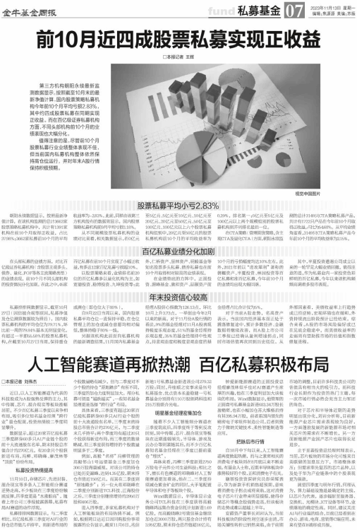 视觉中国图片重要倡议书发布 公募基金北交所投资有望加码02基金新闻明泽投资马科伟:以风险意识 和产业思维锻造投研体系05基金人物04财富视野万家基金陈奕雯:债市风险可控 中短债产品仍具配置价值07私募基金前10月近四成股票私募 实现正收益