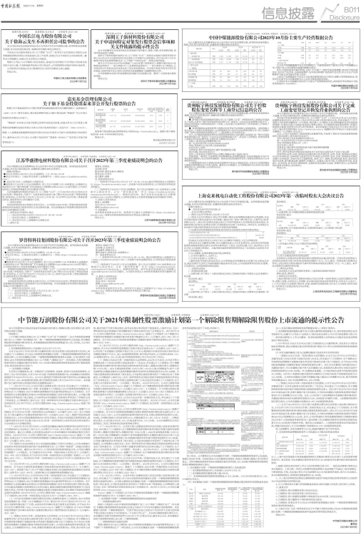 1、中节能万润股份有限公司(以下简称“公司”或“万润股份”)2021年限制性股票激励计划(以下简称“本次激励计划”)第一个解除限售期解除限售条件已经成就,符合解除限售条件的激励对象共605名,本次解除限售的限制性股票数量为6,925,050股,占公司目前总股本的0.7445%。