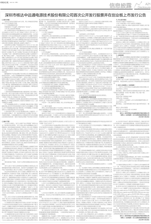 11、网下投资者应根据《深圳市核达中远通电源技术股份有限公司首次公开发行股票并在创业板上市网下发行初步配售结果公告》,于2023年12月1日(T+2日)16:00前,按最终确定的发行价格与初步配售数量,及时足额缴纳新股认购资金。
