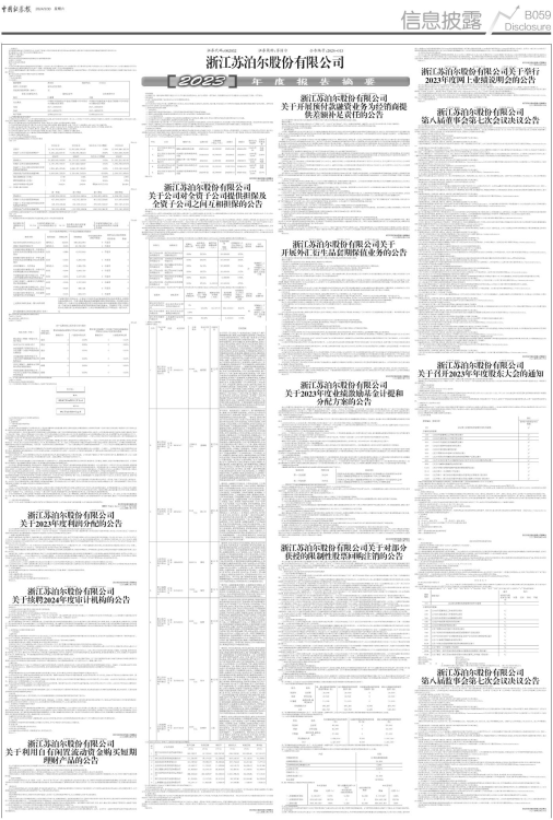 根据浙江苏泊尔股份有限公司(以下简称“公司”、“本公司”或“苏泊尔”)第八届董事会第七次会议决议,公司决定于2024年4月25日召开公司2023年年度股东大会。现将有关事项通知如下: