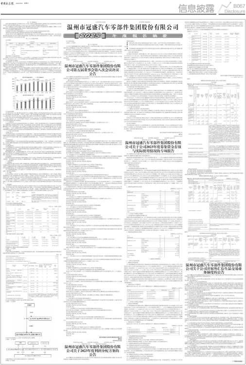 温州市冠盛汽车零部件集团股份有限公司关于公司2023年度募集资金存放与实际使用情况的专项报告