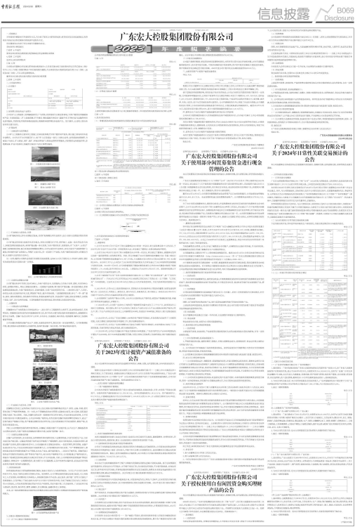 根据《企业会计准则》《深圳证券交易所上市公司自律监管指引第1号一一主板上市公司规范运作》等相关规定,为了更加真实、准确地反映公司截至2023年12月31日的资产状况和财务状况,广东宏大控股集团股份有限公司(以下简称“公司”)对合并范围内各类资产进行了全面清查和减值测试,公司对存在减值迹象的资产计提了减值损失。现将具体情况公告如下: