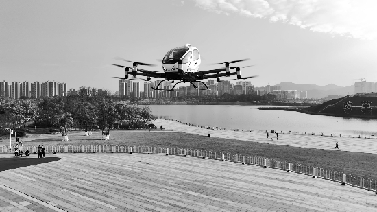 亿航智能eVTOL在九龙湖广场飞行 本报记者 万宇 摄